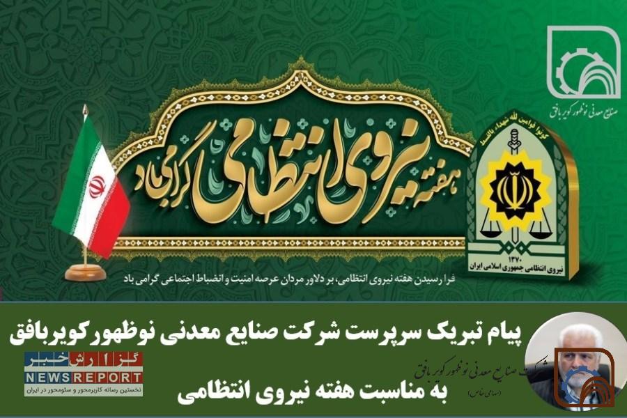 پیام تبریک سرپرست شرکت صنایع معدنی نوظهور کویربافق به مناسبت هفته نیروی انتظامی