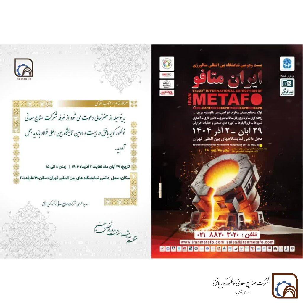 حضور شرکت صنایع معدنی نوظهور کویر بافق دربیست و دومین نمایشگاه بینالمللی متالورژی متافو
